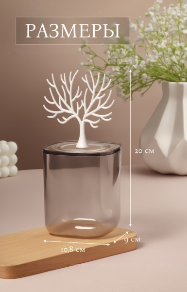 Органайзер для хранения «WOOD», с крышкой, 9×10.8/20 см, прозрачный, белый