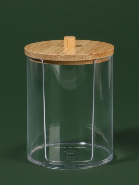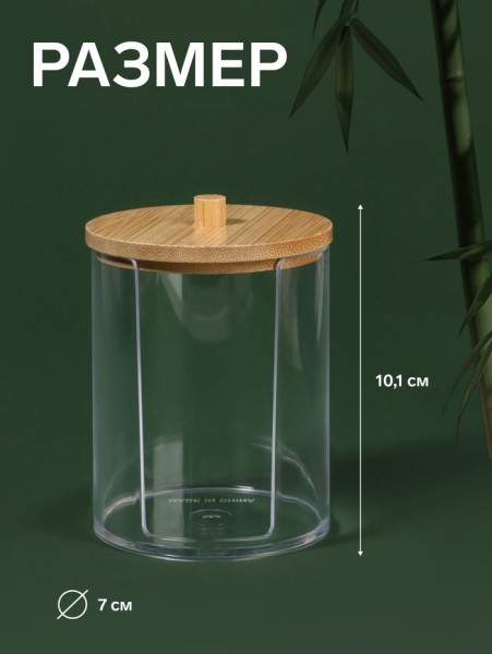 Органайзер для ватных дисков «BAMBOO», с крышкой, d=7×10.1 см, прозрачный, коричневый