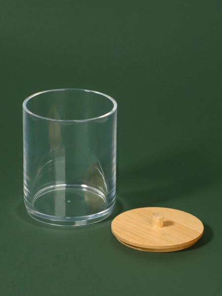 Органайзер для ватных палочек «BAMBOO», с крышкой, d=7×9.5 см, прозрачный, коричневый