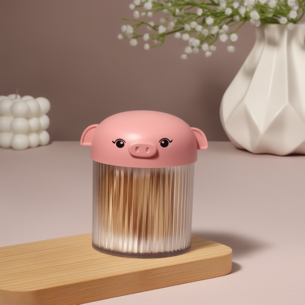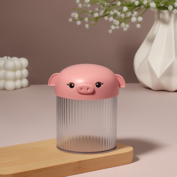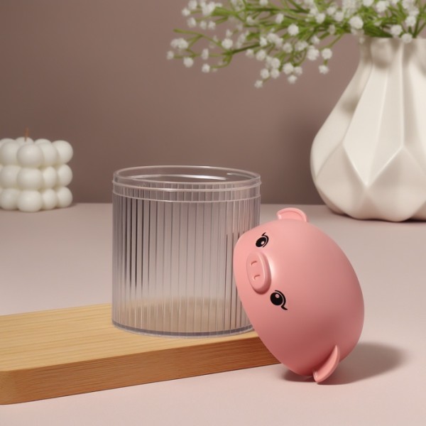 Органайзер для ватных палочек «Хрюшка», с крышкой, d=7.7×10.3 см, розовый, прозрачный