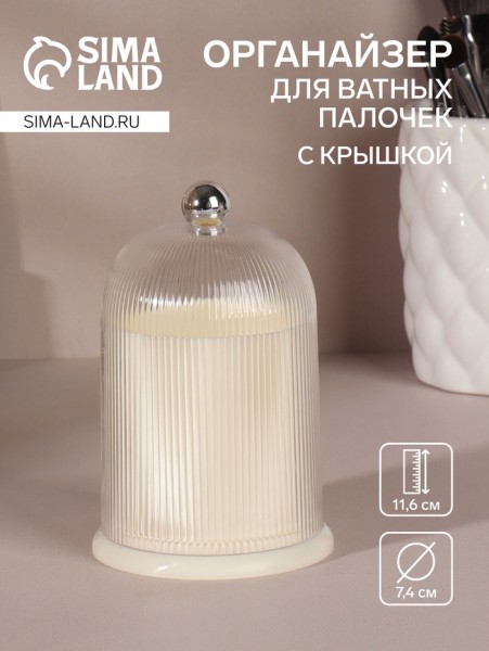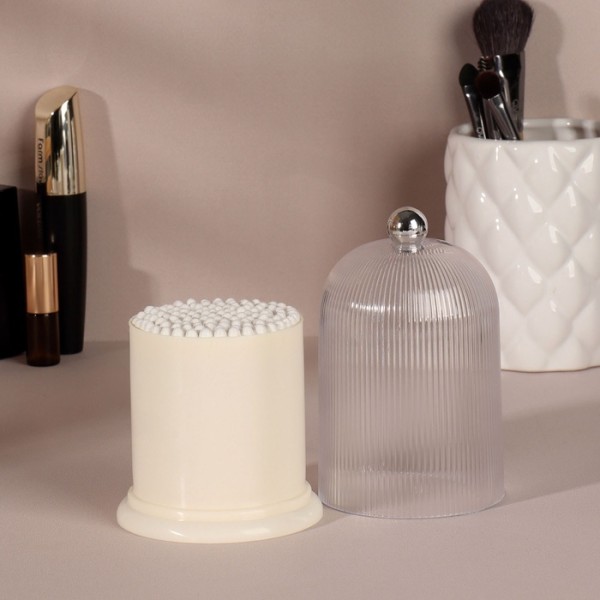 Органайзер для ватных палочек, с крышкой, d=7.4×11.6 см, молочный, прозрачный