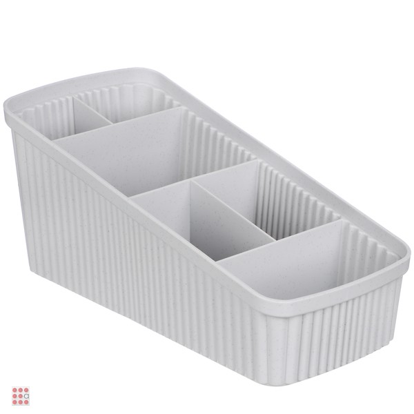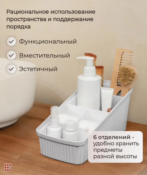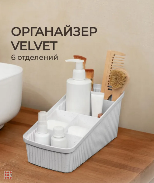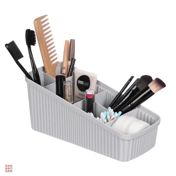 Универсальный органайзер VELVET 240х117х106 мм, светло-серый флэк – это удобное приспособление для хранения косметики и аксессуаров. Пластиковый жесткий корпус не боится влаги, устойчив к опрокидыванию, не занимает много места на полке, стеллаже или в шкафу в ванной комнате или спальне. Имеет 6 ячеек и переменную высоту, что позволяет расположить в нем как мелкие предметы, так и длинные кисточки, расчески, косметические карандаши и тушь. Нейтральный дизайн впишется в любой интерьер.