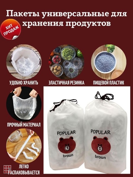 Пакеты на резинке не только экономят время, но и облегчают процесс организации хранения, благодаря своей универсальности. Легкие и компактные, занимают мало места. Компактный размер и удобность использования делают эти пакеты незаменимой вещью для нашей кухни. Сэкономив место в холодильнике или на кухонной полке, мы получаем надежную защиту нашей еды от внешних факторов.