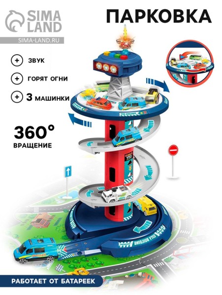 Парковка «Гонки по кругу», 3 машинки в комплекте, свет и звук