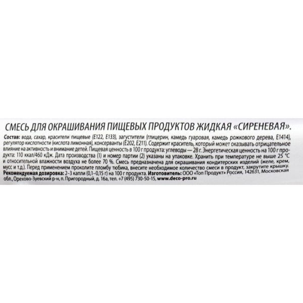 Пищевой краситель Top Decor гелевый, сиреневый, 100 г