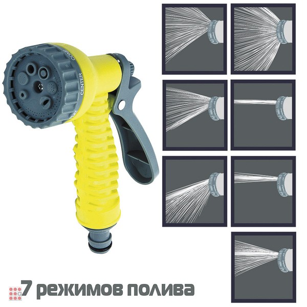 Пистолет-разбрызгиватель, 7 режимов, с эргономичной ручкой, пластик INBLOOM