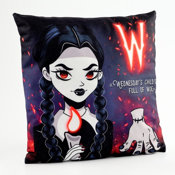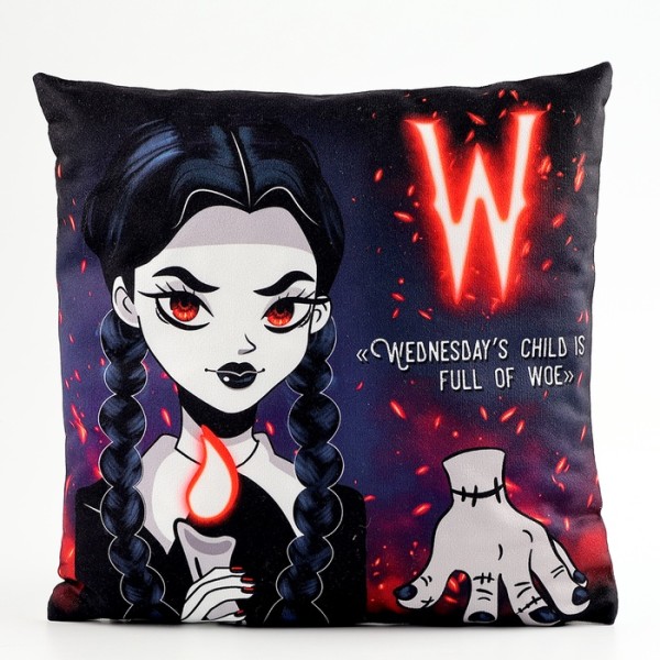 Подушка с изображением легендарной готической девочки добавит в ваш дом нотку современного шарма. Она напоминает о любимых моментах из фильмов и создаёт ощущение уюта, будто вы погружаетесь в историю вместе с персонажем. Небольшой, но значимый элемент декора, который сделает ваш интерьер запоминающимся.