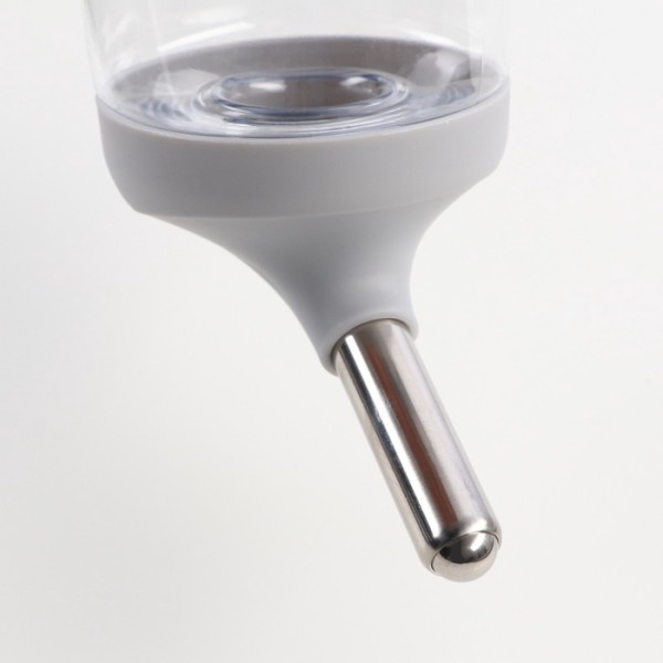 Поилка крепится между прутьев клетки, оснащена носиком из нержавеющей стали с металлическим шариком, который препятствует вытеканию воды.
