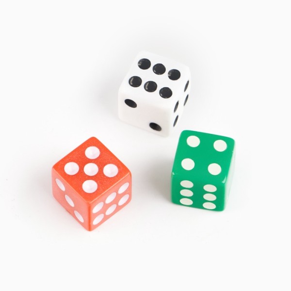 В комплект входят три кубика с гранями 1.5 см и 54 карты размером 5.5 на 10.5 см.