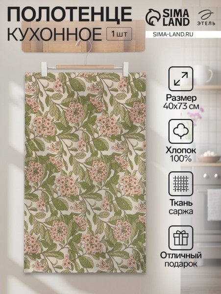 Полотенце «Этель» Spring garden, 40×73 см, 100% хлопок, саржа 190 г/м²