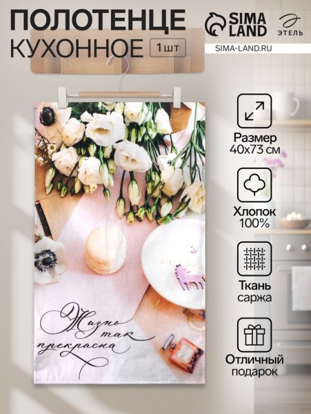 Полотенце кухонное "Пионы" 40х73 см, 100% хл, саржа 190 гр/м2