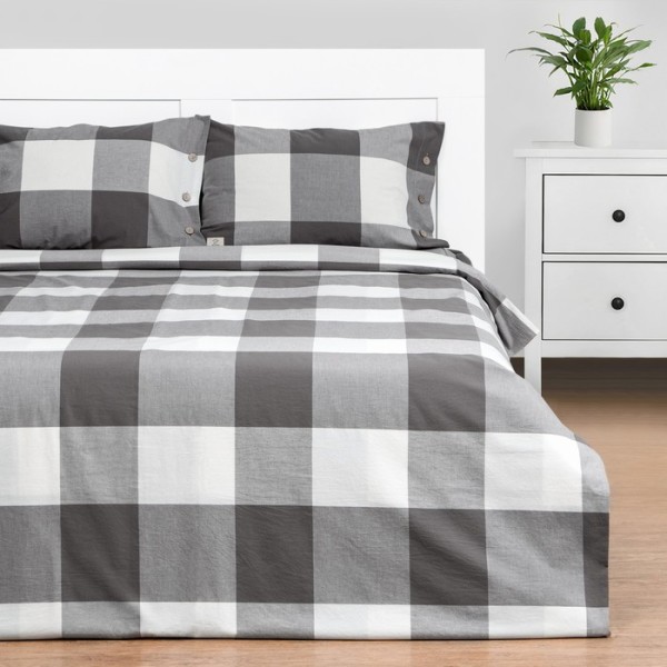 Постельное бельё 1.5-спальное «Этель. Серая клетка», жатый хлопок Жатый хлопок