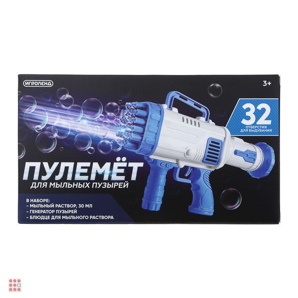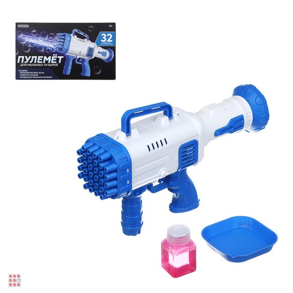 Пулемет для мыльных пузырей, 4хАА, 30 мл, мыльный раствор, 2 цвета
