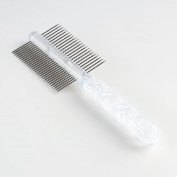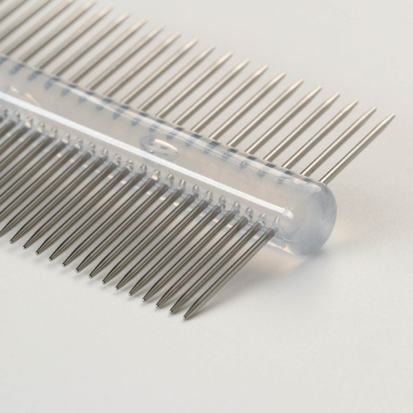 С одной стороны расчески частые зубцы, с другой - более редкие, что позволяет с ее помощью ухаживать за шерстью разных животных.