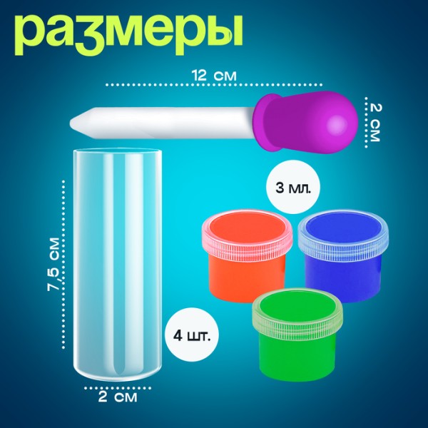 * Колбочки, 4 шт.: 1,8 × 1,8 × 7,5 см.