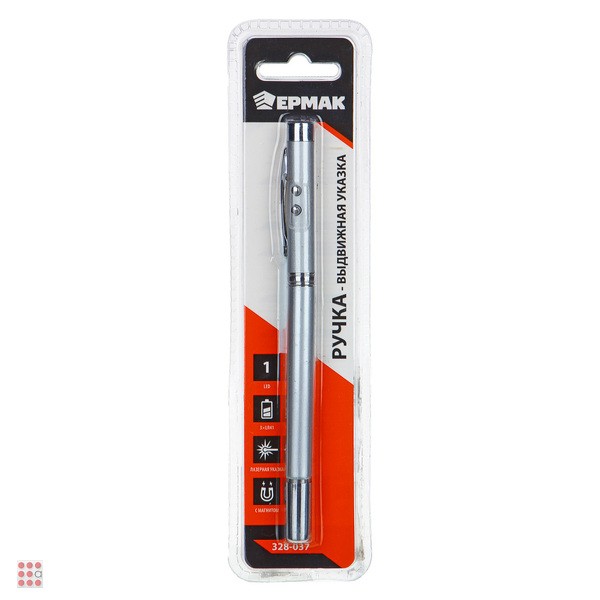 Ручка - выдвижная указка, магнит, 1 LED + лазер, 3xLR41, пластик, металл, 18х3,5см