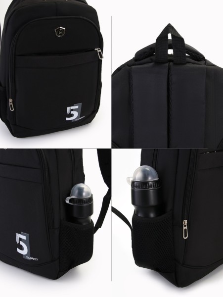 Рюкзак молодёжный на молниях, с принтом, 4 кармана, с принтом, размер 35×18×50 см, чёрный/серый