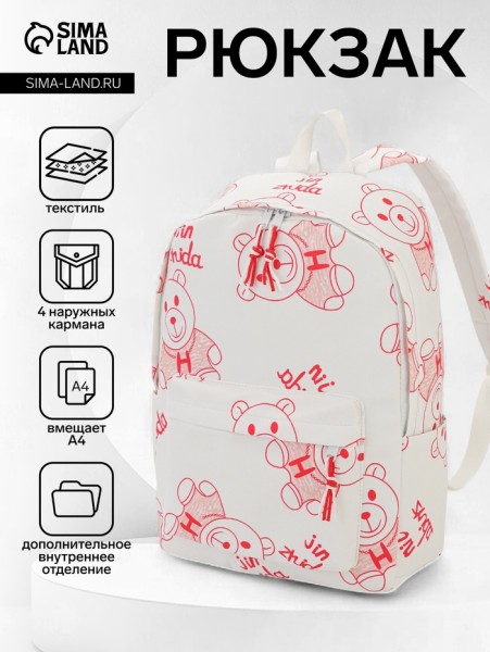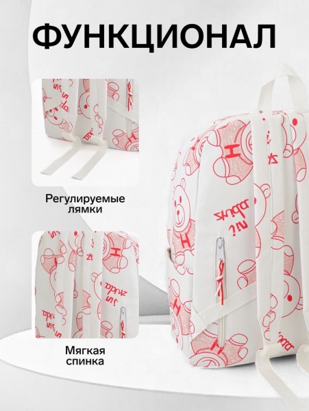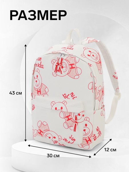 Рюкзак школьный на молнии, с карманами, размер 23×12×43 см, белый/красный