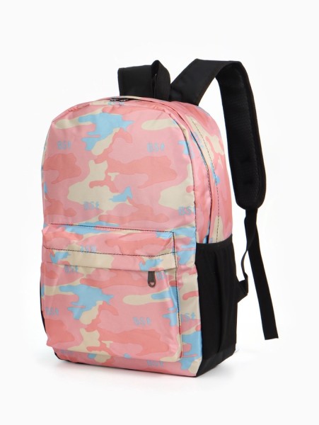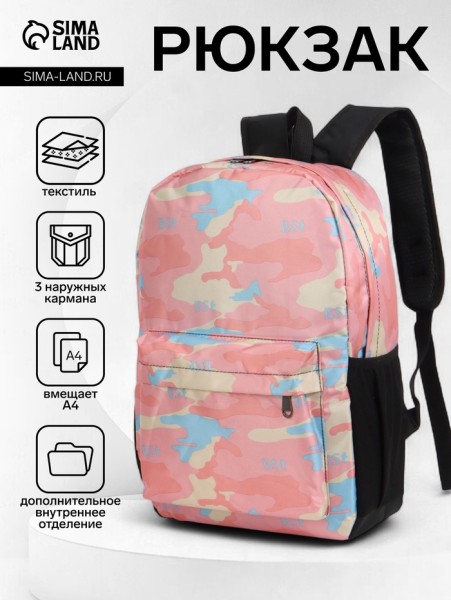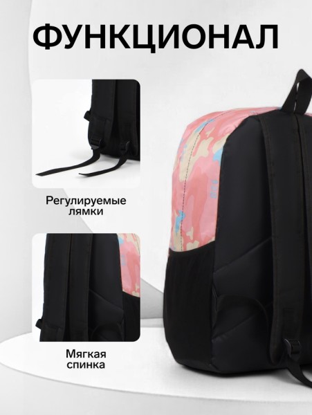 Рюкзак школьный на молнии, с карманами, с принтом, размер 30×13×42 см, розовый/голубой/бежевый