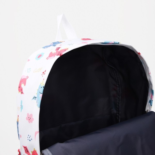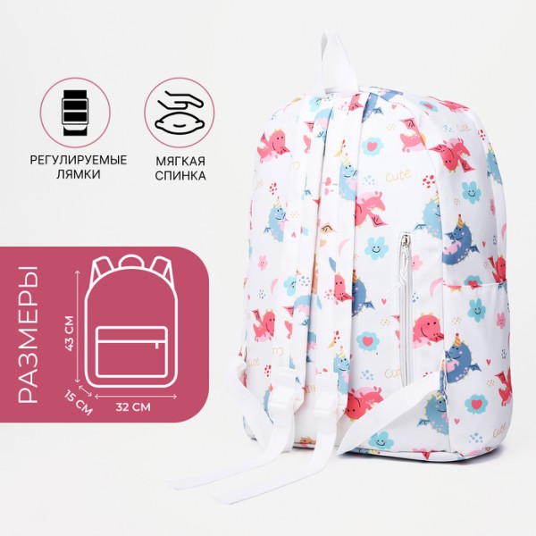 Рюкзак школьный на молнии, с карманом, размер 32×15×43 см, белый/разноцветный