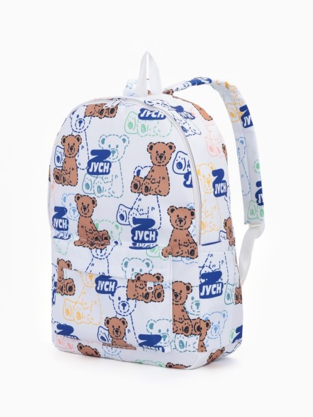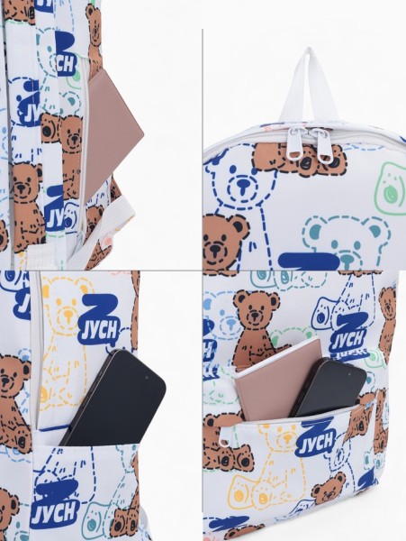 Рюкзак школьный на молнии, с карманом, с принтом, размер 30×12×43 см, белый/синий