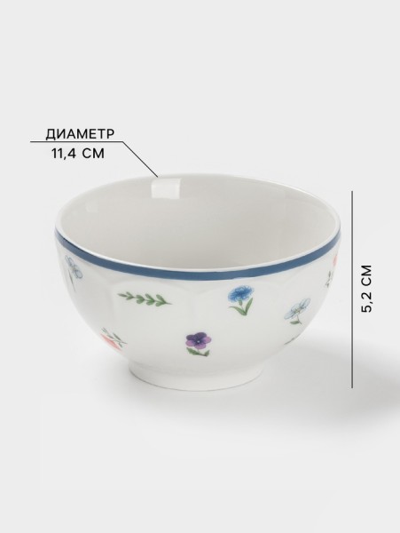 Салатник Доляна «Романс», 11.4×11.4×5.2 см, фарфор, белый