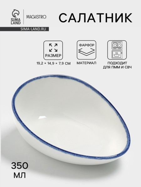 Салатник Magistro Blue Lagoon, 350 мл, 19.2×14.9×7.9, фарфор, белый