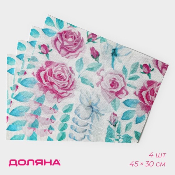 Салфетки сервировочные на стол Доляна «Бутоны», 4 шт., 45×30 см