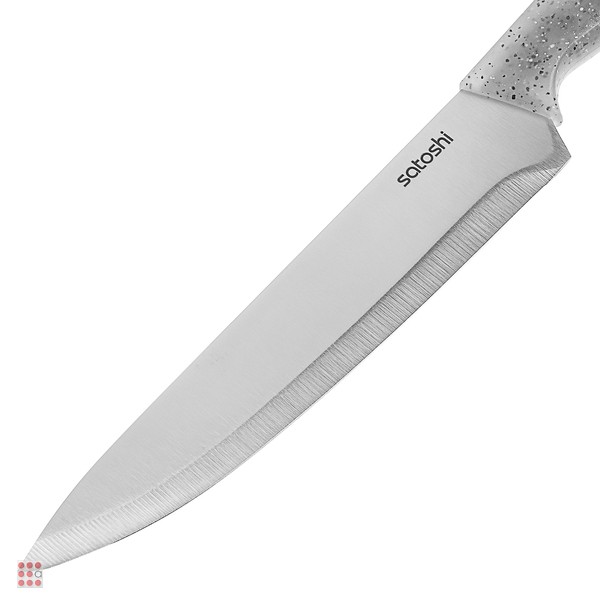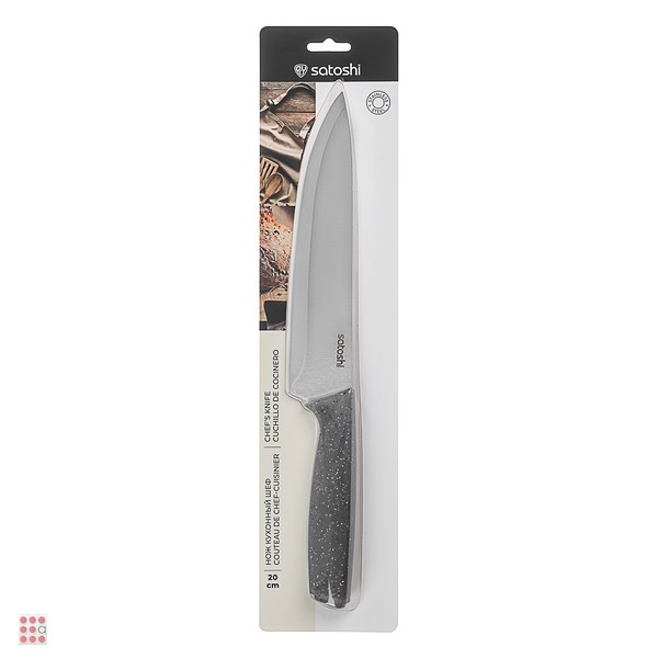 Кухонный шеф нож SATOSHI «Ивуа» с длиной лезвия 20 см используется для шинкования фруктов и овощей, а также для нарезки мяса, рыбы и деликатесов. Имеет продуманную геометрию клинка и удобную рукоять, что позволяет производить нарезку в шефской технике. Высококачественная нержавеющая сталь обладает высокими гигиеническими характеристиками: не окисляет продукты, не накапливает бактерии, легко моется и прекрасно держит заточку. Сдержанный дизайн будет актуально смотреться в любом интерьере.