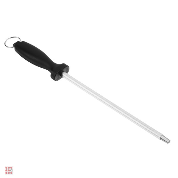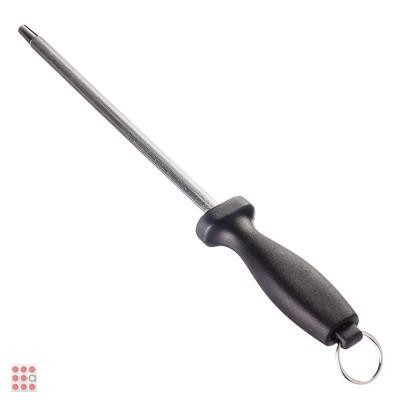 Мусат для заточки ножей позволит всегда вашим ножам оставаться острыми в такой степени, что нарезка тонких ломтиков продуктов никогда не будет проблемой. Мусат 30 см позволит быстро заточить лезвие по принципу «нож об нож». В результате оно станет идеально острым. Инструмент оснащён пластиковой ручкой.