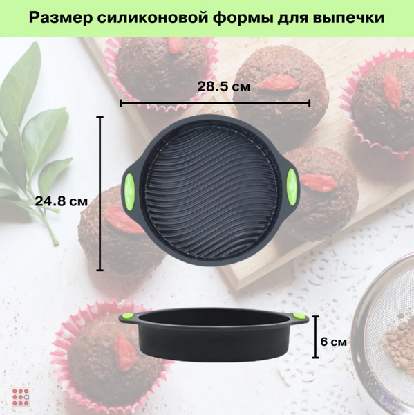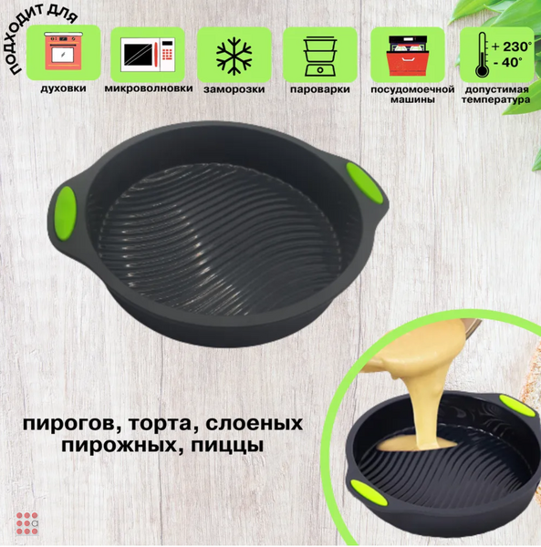 Силиконовая форма для выпечки-это универсальное приобретение, которое должно быть на каждой кухне. Кухонный аксессуар выполнен из пищевого силикона, который не выделяет вредных веществ в пищу. Силиконовая форма для выпечки полностью антипригарная и легко моется мыльной водой и в посудомоечной машине. Она подходит для выпекания хлеба, пирогов, торта, слоеных пирожных, пиццы. Гибкая и прочная силиконовая форма для запекания выдерживает температуру от -40 до +230 градусов Цельсия. Термостойкая силиконовая форма для выпечки круглая снаружи имеет матовую текстуру, а внутри глянцевую. Любая выпечка легко вынимается из форм из силикона. Пирожные, чизкейк, шоколадный торт или птичье молоко станут еще вкуснее с силиконовой формочкой для выпечки. При взаимодействии с высокими температурами они не выделяют ядовитых паров и резких запахов.