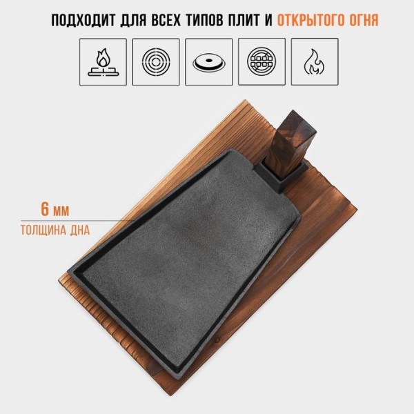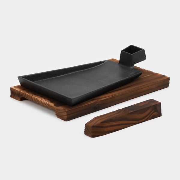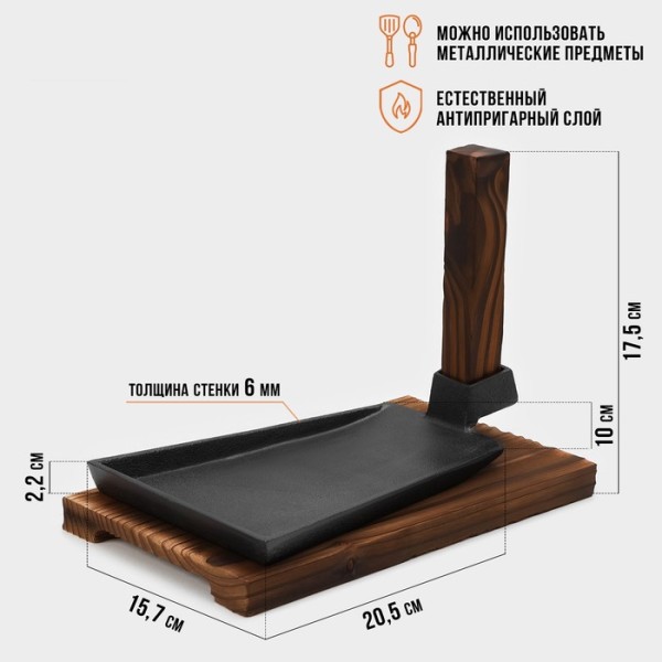 Сковорода Magma «Вунгтау», 24×15.3×2.2 см, на деревянной подставке, чугун, чёрная