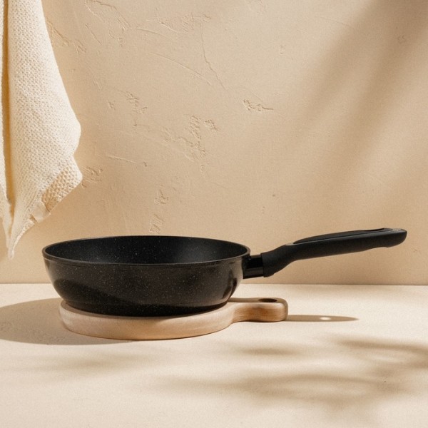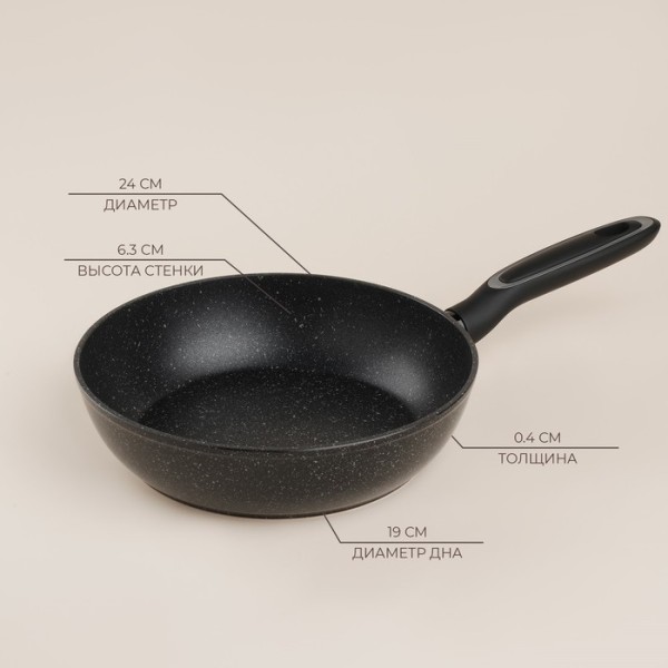 Сковорода с высоким бортом SL Home, d=24 см, h=6.3 см, антипригарное покрытие, индукция, кованый алюминий, чёрная