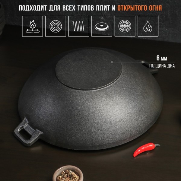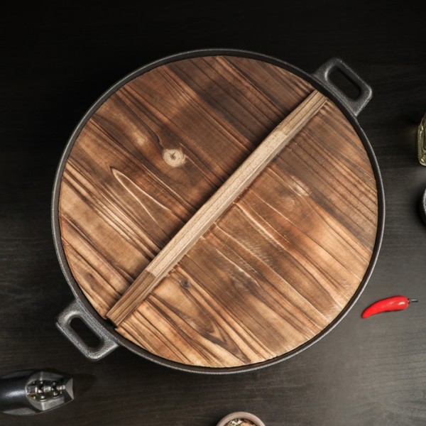 Сковорода-ВОК Magma «Хемминг», 4 л, 37×9.5 см, чугун, с деревянной крышкой, индукция, чугун, чёрная