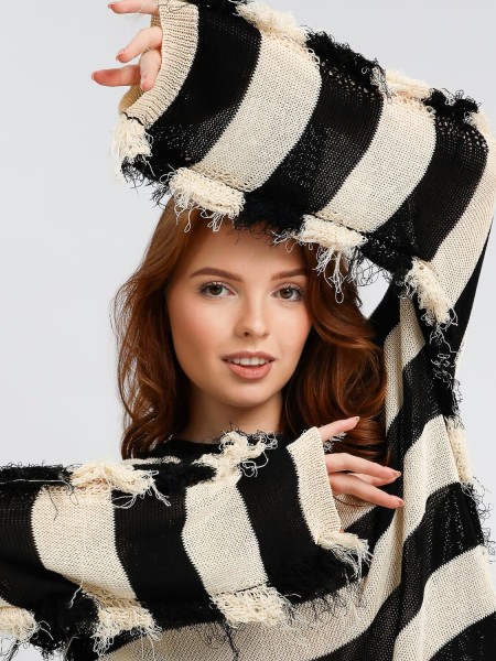 Джемпер Соль&Перец в стиле оверсайз, с трендовым принтом “полосы” и эффектными дырками – универсальная вещь, которая станет основой вашего гардероба. Модель выполнена из высококачественного материала, который обладает рядом преимуществ: приятная текстура, хорошая терморегуляция, износостойкость, комфорт при носке. Джемпер идеально сочетается с любыми предметами гардероба. Подходит для повседневной носки, прогулок, встреч с друзьями. Станьте обладателем этой стильной и комфортной вещи, которая станет незаменимой частью вашего гардероба!