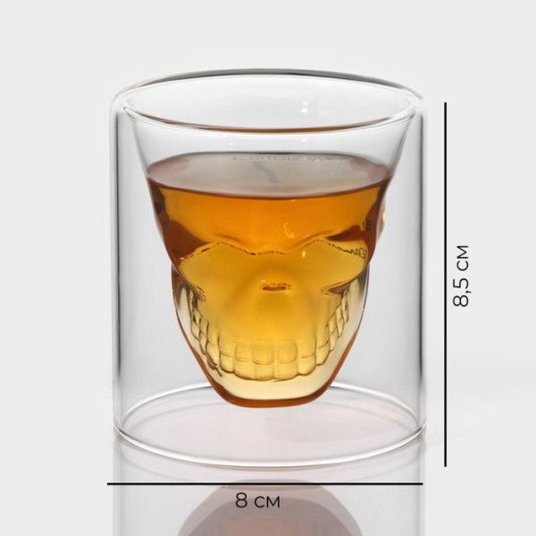 Стопки шоты Magistro «Череп», 150 мл, 8×8.5 см, с двойными стенками, набор 2 шт., стекло, прозрачный