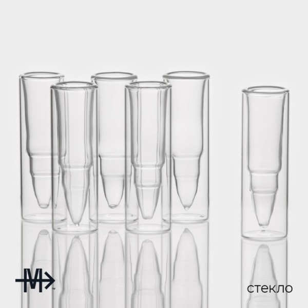 Стопки шоты Magistro «Пуля», 30 мл, 3.5×11 см, с двойными стенками, набор 6 шт., стекло, прозрачные