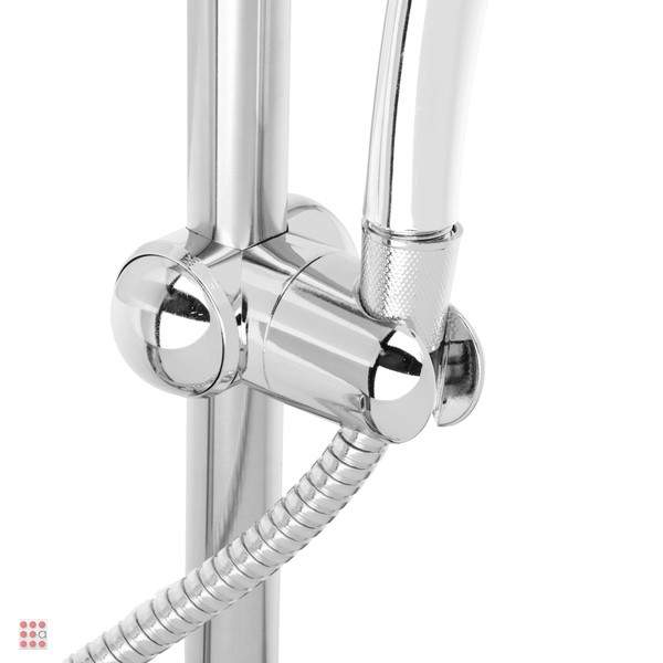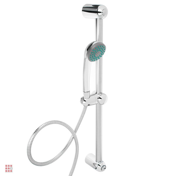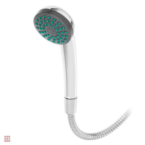 Набор для душа: стойка, лейка и шланг. Подходит для ванны и душевой кабинки. Стойка с держателем лейки. Длина шланга 150 см - удобно для людей любого роста. Один режим душа. Крепится к стене - крепежа нет в комплекте.