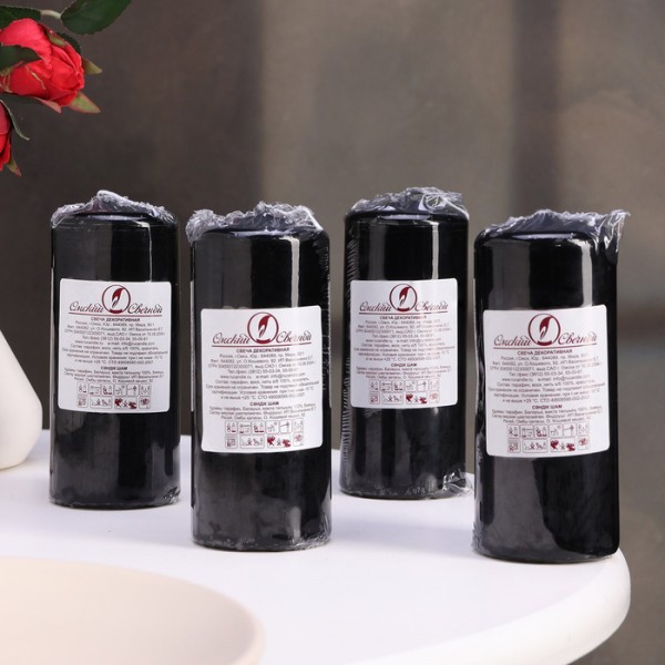 Свеча-цилиндр, 5×11.5 см, набор 4 шт., чёрная