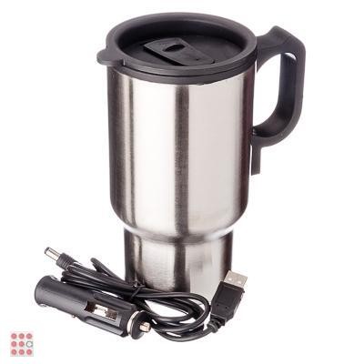Термокружка из нержавеющей стали объемом в 0,45л с подогревом от гнезда прикуривателя . Упакована в отдельную коробочку. Термос-кружка 0,45л, подогрев от прикуривателя