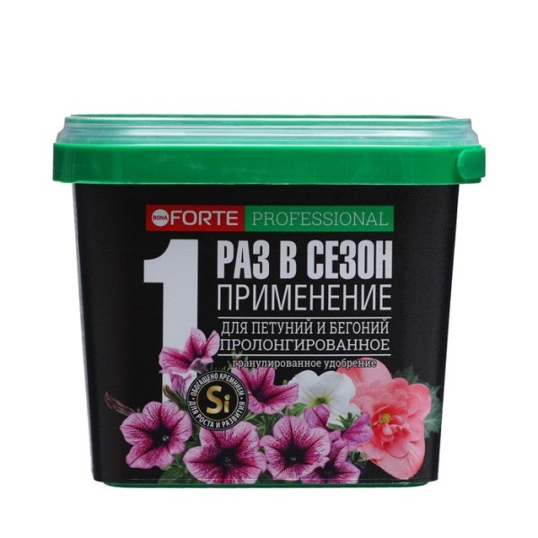 Удобрение Для петуний, бегоний, пеларгоний, ампельных растений и других цветочно-декоративных культур произведено по уникальной передовой технологии «SIIOG», обеспечивающей важные качественные преимущества перед традиционным смешением:Равномерное внесение – благодаря содержанию всех компонентов в одной грануле растение гарантированно обеспечивается КАЖДЫМ элементом питания.Пролонгированное действие – благодаря входящему в состав удобрения цеолиту питательные вещества высвобождаются постепенно и усваиваются растениями по мере потребности (одного внесения хватает на весь сезон).Хорошая растворимость – удобрение начинает действовать моментально.Экономичное расходование – благодаря гранулам можно с высокой точностью вносить удобрение и подкармливать растения.Удобрение содержит основные элементы питания в легкоусвояемой форме и сбалансированном соотношении, способствует хорошему росту растений и пышному цветению. При выращивании рассады из семян – внесите 2-3 г на 1 л грунта, тщательно перемешайте.При пересадке рассады в открытый грунт или в кадку (цветочный горшок) – внесите 2-3 г в каждую посадочную лунку и перемешайте с почвой. При посадке или пересадке комнатных растений, а также контейнерных растений – внесите 2-3 г на 1 л грунта, тщательно перемешайте.При заправке клумб, грядок или пересадке растений открытого грунта - равномерно рассыпьте по поверхности почвы из расчета 20-25 г на кв. метр и тщательно взрыхлите верхний слой почвы.Дополнительная информация:После окончания срока годности удобрение не теряет агрономической ценности. Состав: Три основных макроэлемента (NPK): азот (N) - 7,5 %, фосфор (P2O5) - 7 %, калий (K2O) - 7,5 %Si: биодоступный кремний - 20%.Мезоэлементы: магний - 0,3 %, кальций - 0,25 %.Шесть микроэлементов: бор, железо, марганец, цинк, медь, молибден.Микроэлементы находятся в хелатной (легкоусваиваемой) форме.Комплекс витаминов: B1, В6, В12, PP, ССтимулятор роста: янтарная кислота.