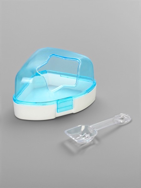 Ванночка для грызунов угловая с лопаткой, 14×10.4 см, голубая