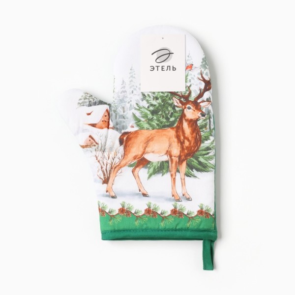 Варежка-прихватка «Новогодний лес» 20×28 см, саржа, 100% х/л, ватин 250 г/м²