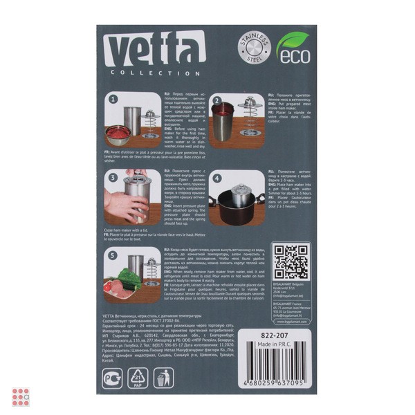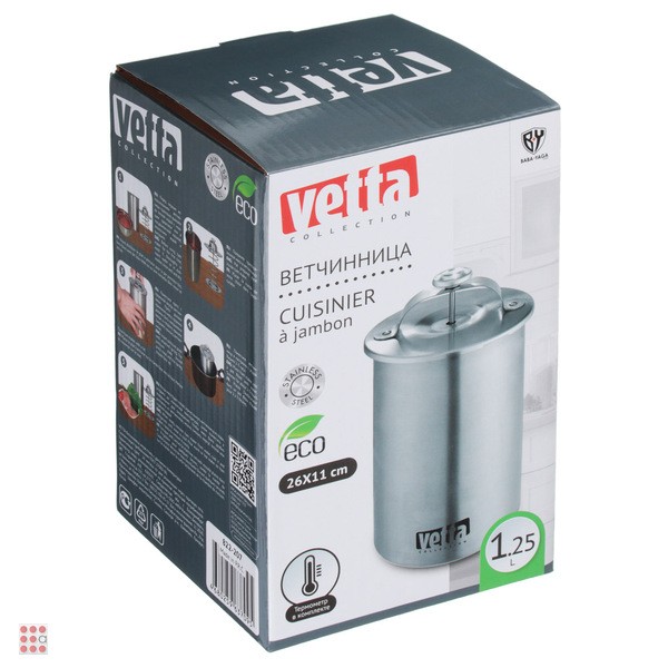 Ветчинница из нержавеющей стали с термометром предназначена для приготовления вкусных вареных мясных деликатесов и домашней ветчины.