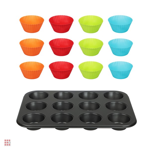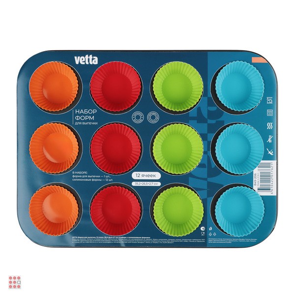 VETTA Форма для выпечки 12 ячеек с силиконовыми формами, 35,2х26,5х2,7см, угл.сталь, антипригарное покрытие