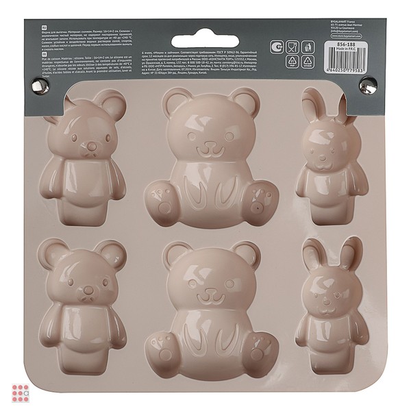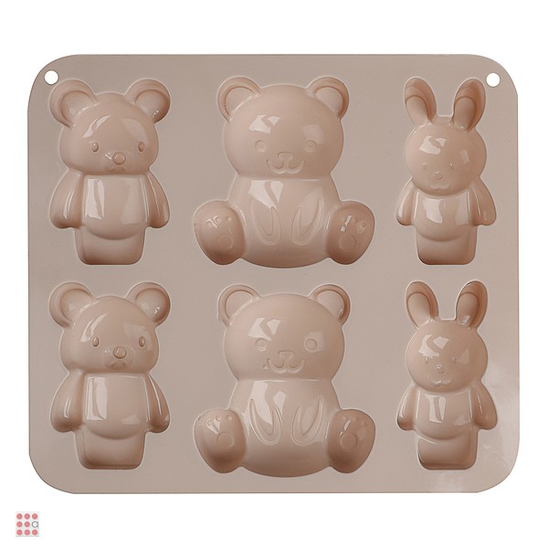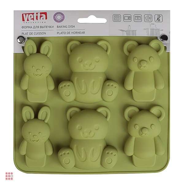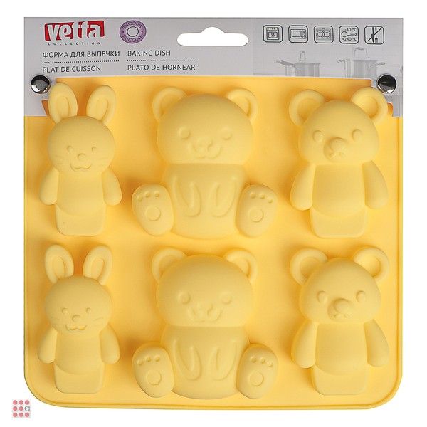 VETTA Форма для выпечки 6 ячеек 16х14х2см, "Мишки и зайчики", силикон, 3 цвета