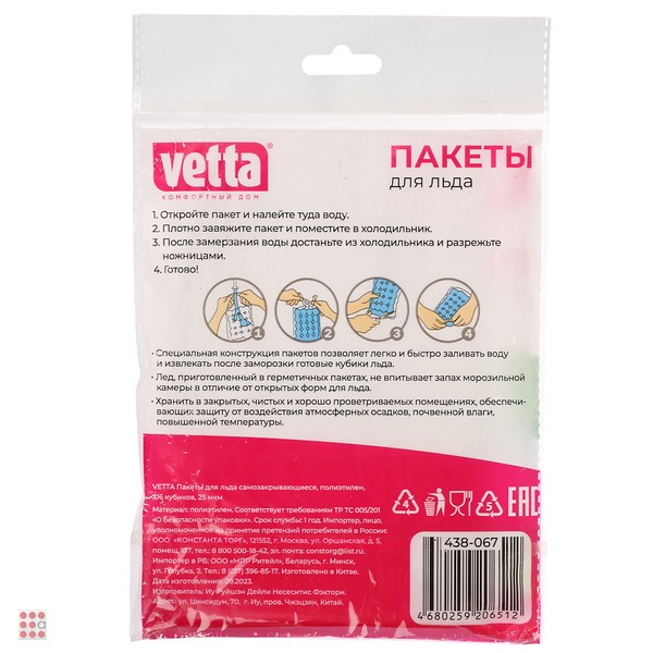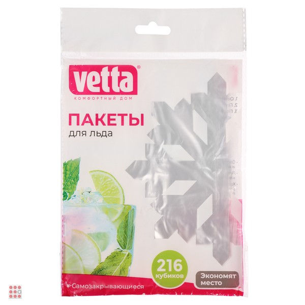 VETTA Пакеты для льда самозакрывающиеся, полиэтилен, 216 кубиков