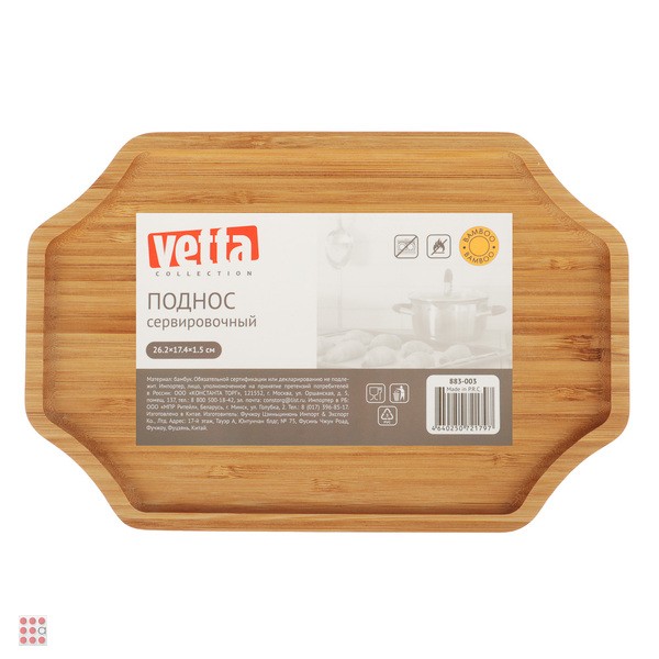 Оригинальный поднос из бамбука от VETTA 26,2х17,4х1,5 см удобен для переноски блюд из кухни на праздничный стол, а также может использоваться как блюдо для сервировки и подачи фруктов, закусок и десертов. Привлекательный экодизайн смотрится стильно, удачно вписываясь в сервировку как повседневного, так и торжественного стола. Также может служить отличным подарком для любителей красивой и функциональной посуды.