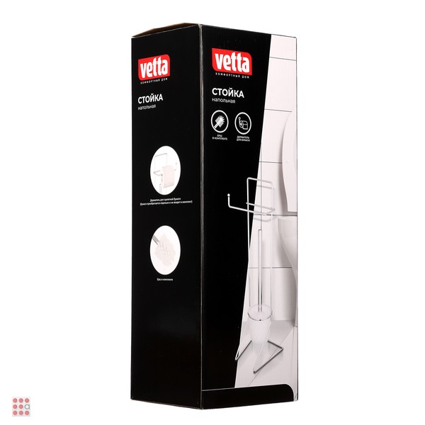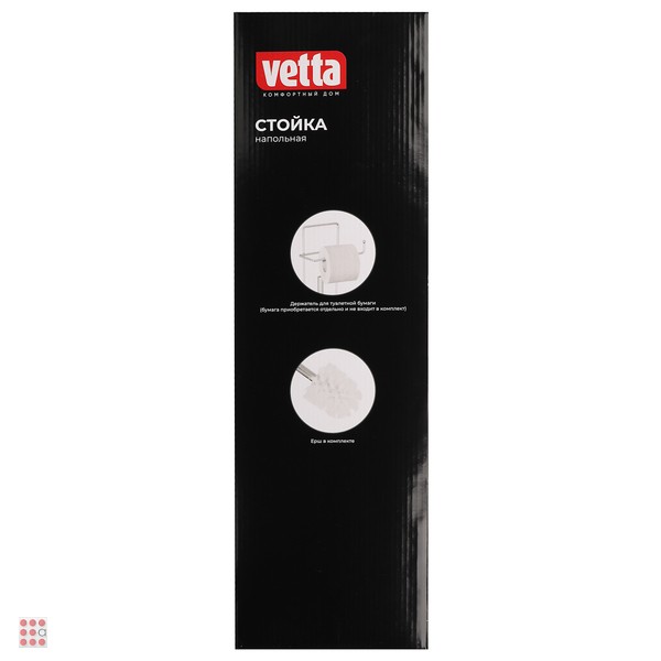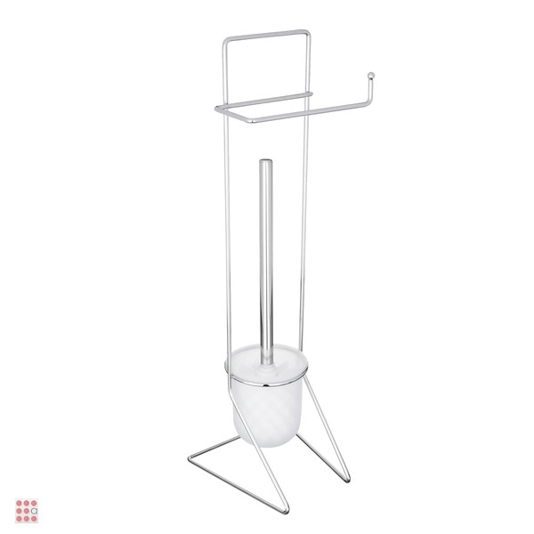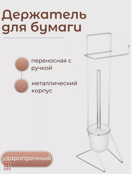 Напольная стойка от VETTA с держателем для туалетной бумаги и ершиком. Переносная с ручкой. Прочная - металлический корпус. Стакан для ершика из стекла - не ржавеет, служит долго. Стойка хромированная.
