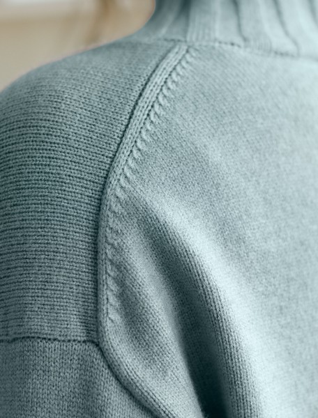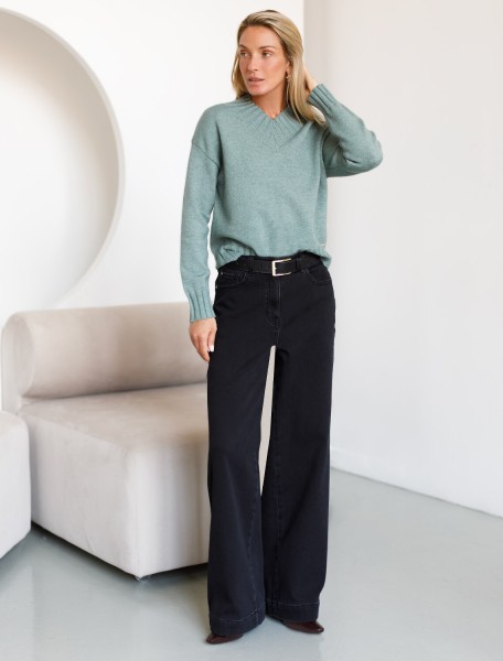 Джемпер выполнен из мягкой пряжи с кашемиром. Изделие дополнено высоким V-вырезом с широкой рибаной. Мягкая пряжа очень приятная к телу, поддержит комфорт на протяжении всего дня, при этом не перегревая. Сочетается в костюме с брюками D38.013, D38.012 и юбкой D36.016
